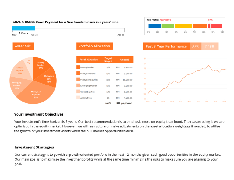 Kami membantu anda membangunkan pelan pelaburan yang bersesuaian dengan kehendak anda. Serta memberi pandangan kepada anda tentang pelan pelaburan yang sesuai dengan tahap risiko anda.
